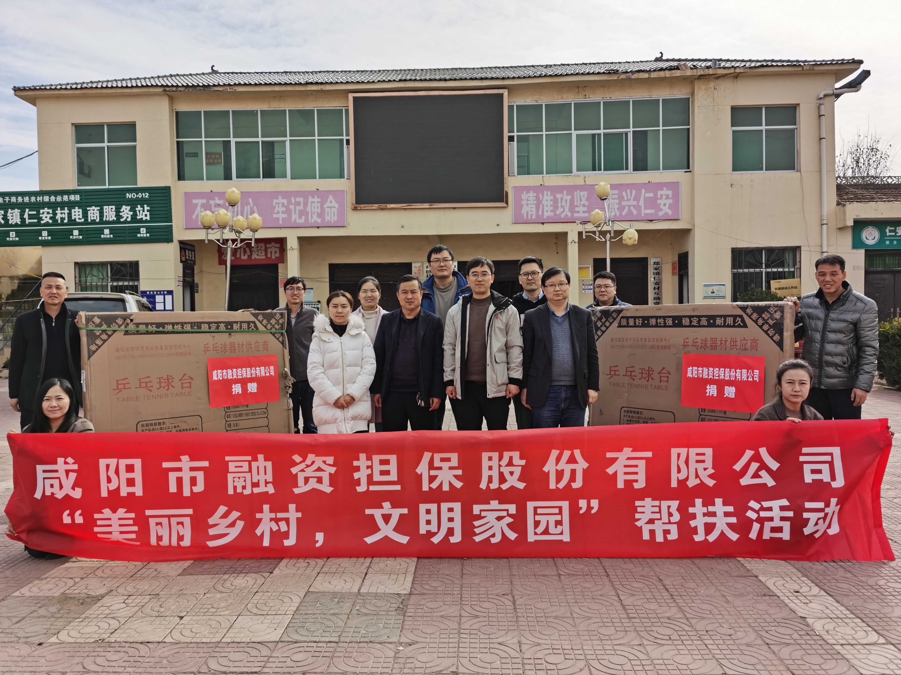 为响应省市精神文明建设工作相关精神,11月4日,咸阳市融资担保股份有限公司中层以上干部深入集团公司对口帮扶贫困村——旬邑县郑家镇仁安村,开展“美丽乡村,文明家园”建设帮扶活动,捐赠乒乓...